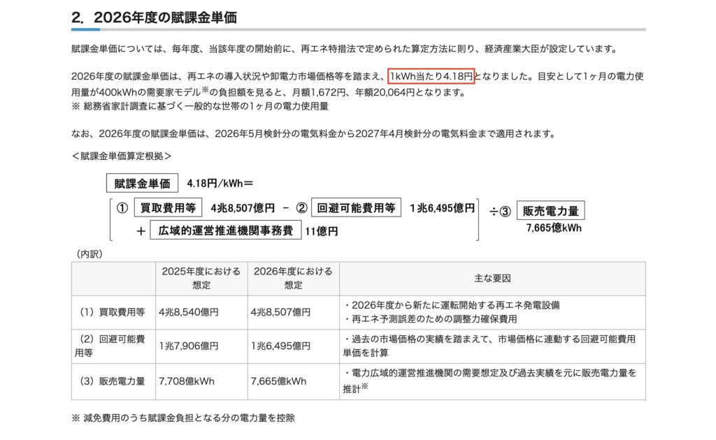 2026年5月以降の再エネ賦課金は、